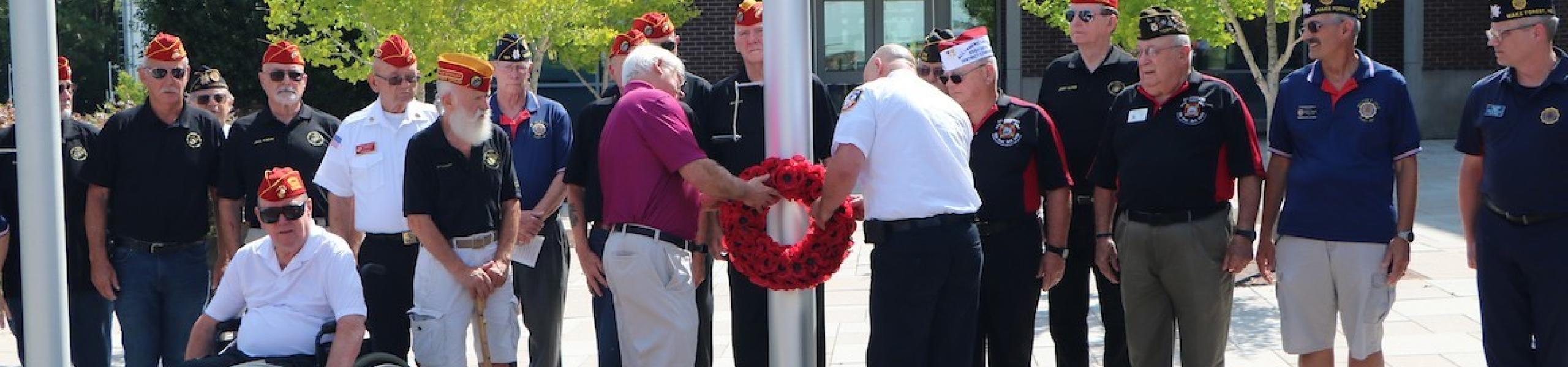 At 11 am on the first Monday of the month (unless otherwise noted) from April through October, the Town of Wake Forest joins with several local veterans' organizations to honor the sacrifices of deceased Wake Forest veterans and their families.