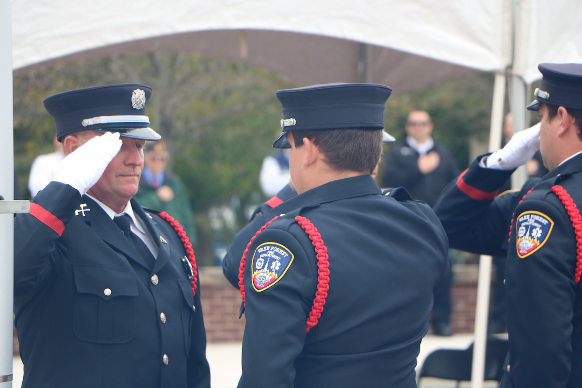 Each ceremony features patriotic songs, special remarks, a memorial wreath laying and the ceremonial flag-raising by the Wake Forest Fire Department Honor Guard. After raising the American flag, the WFFD Honor Guard raises the service flag representing the military branch in which the honoree served. Both flags fly in Centennial Plaza throughout the remainder of the month.