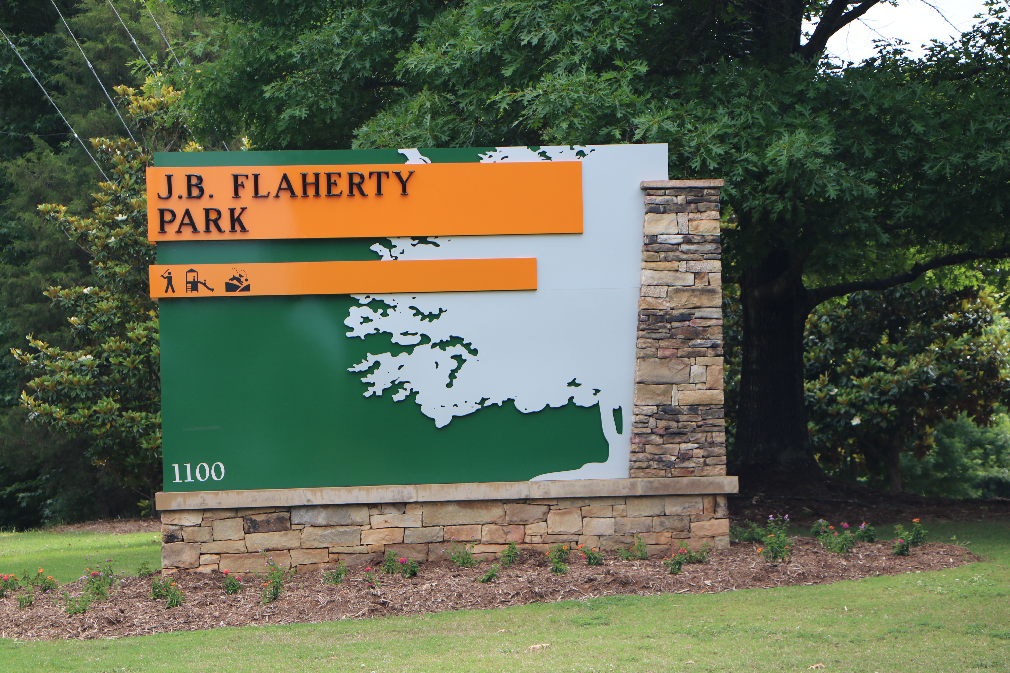 J.B. Flaherty Park is located at 1100 N. White Street in Wake Forest, NC. The land where the park sits was originally a 160-acre farm owned by the Flaherty Family.