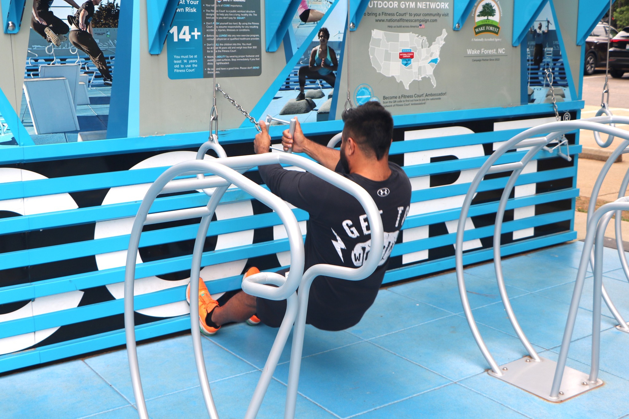 The outdoor Fitness Court is a featured part of a 2022 initiative launched by National Fitness Campaign (NFC), a nationwide consulting organization that partners with cities and schools to plan, build, and fund healthy infrastructure.