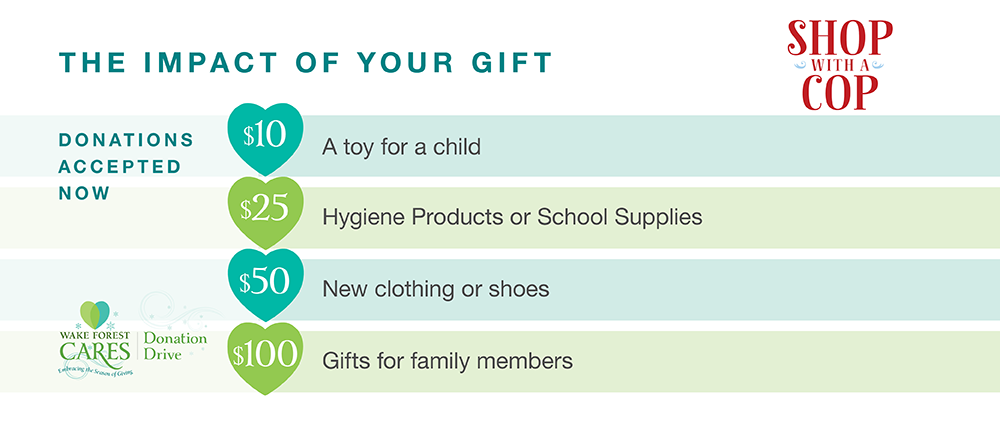 The Wake Forest Police Department accepts online donations for Shop with a Cop.