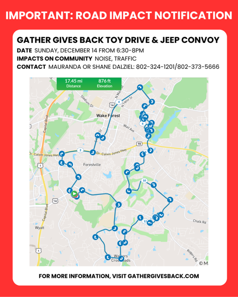 Examples of Community Events include the Wake Forest Rotary Club’s Cars & Carnivores Street Festival, Wake Forest Downtown, Inc.’s Forest Fest, and the Wake Forest Area Chamber of Commerce’s Meet in the Street.